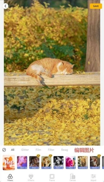 3、进入图片编辑界面后,你可以根据自己的喜好自由挑选滤镜和贴纸,还能对画面比例等各项参数进行调整。