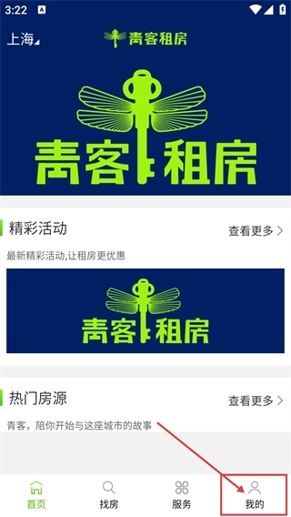 1、打开【青客租房】首页,浏览【精彩活动】下的【热门房源】板块,点击页面底部的【我的】按钮,即可进入个人操作相关界面。