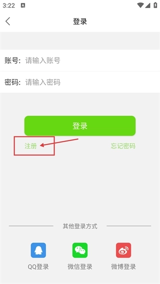 3、进入登录界面后,你可以填写【请输入账号】和【请输入密码】进行登录,也能点击【注册】按钮完成注册,同时还支持【QQ登录】等第三方登录方式。