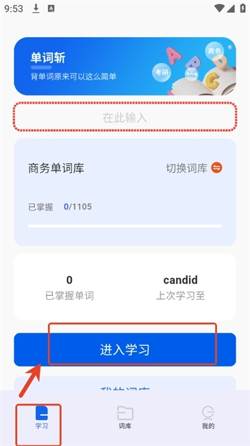 3、选择后,返回【学习】界面,词库便切换成功了