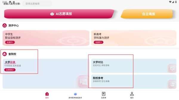 3.高考工具箱,涵盖查找大学、查询专业、测算录取概率、查看分数线等功能