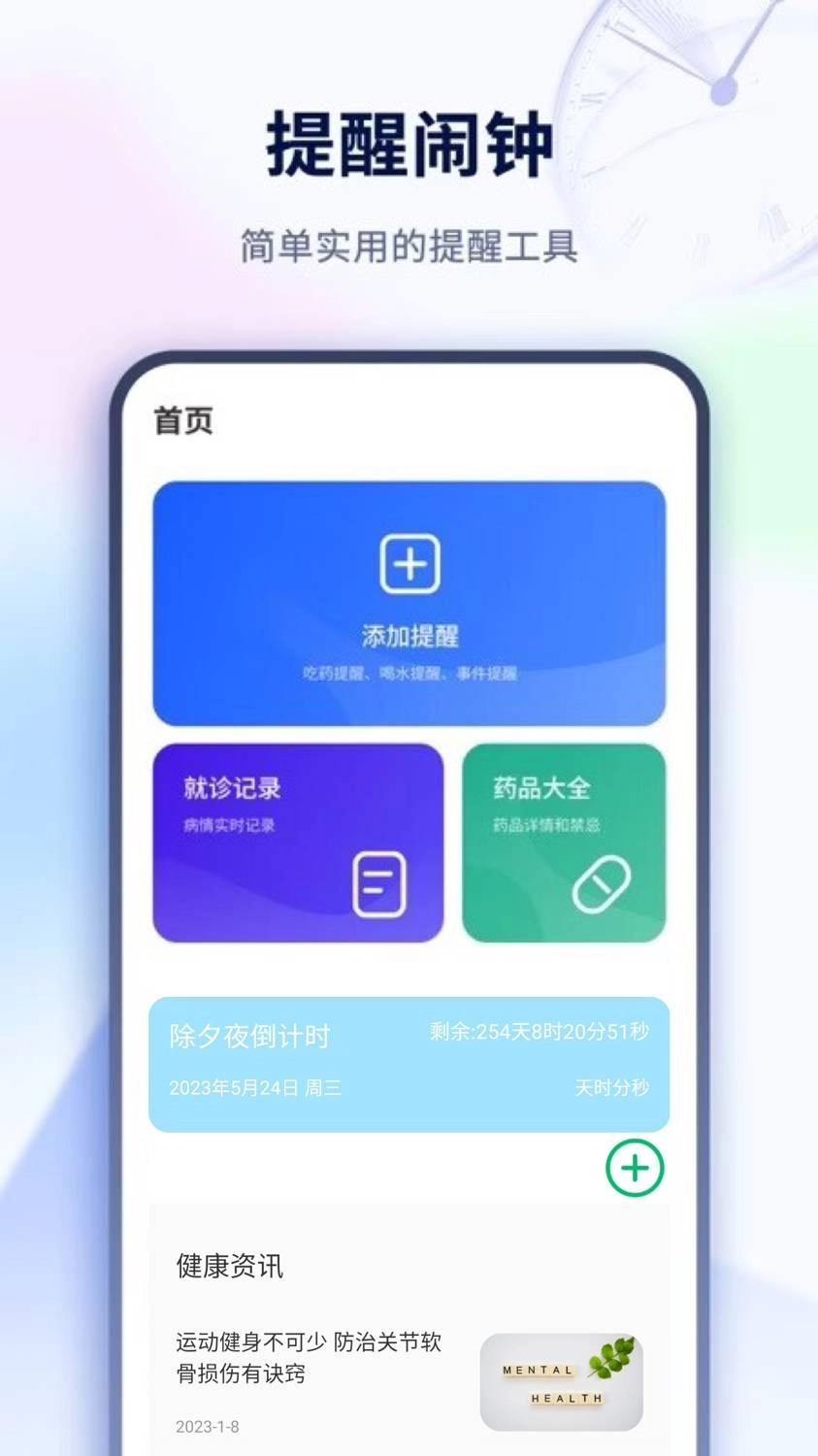 2.轻松启用多场景提醒功能,可自定义设置服药时间。