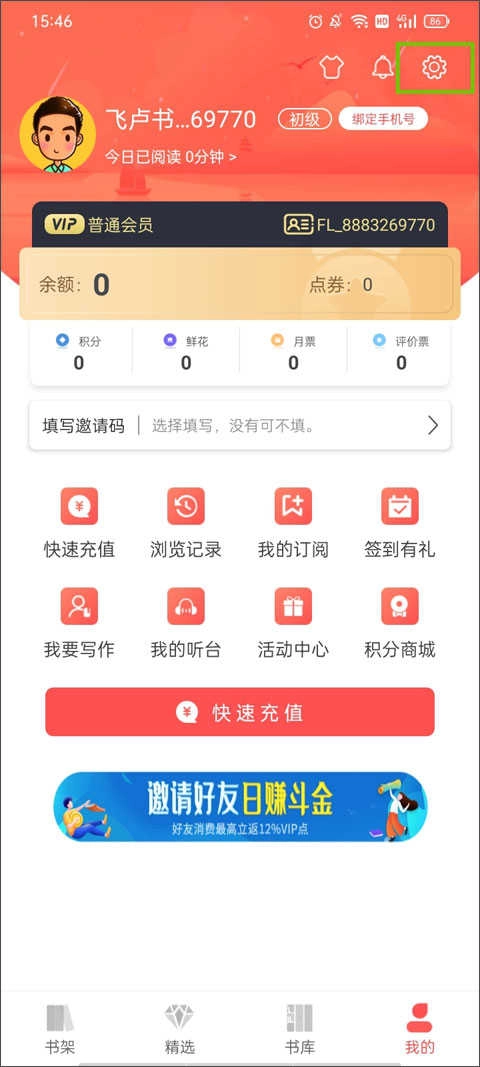 打开软件,进入【我的】界面,点击右上方设置图标。