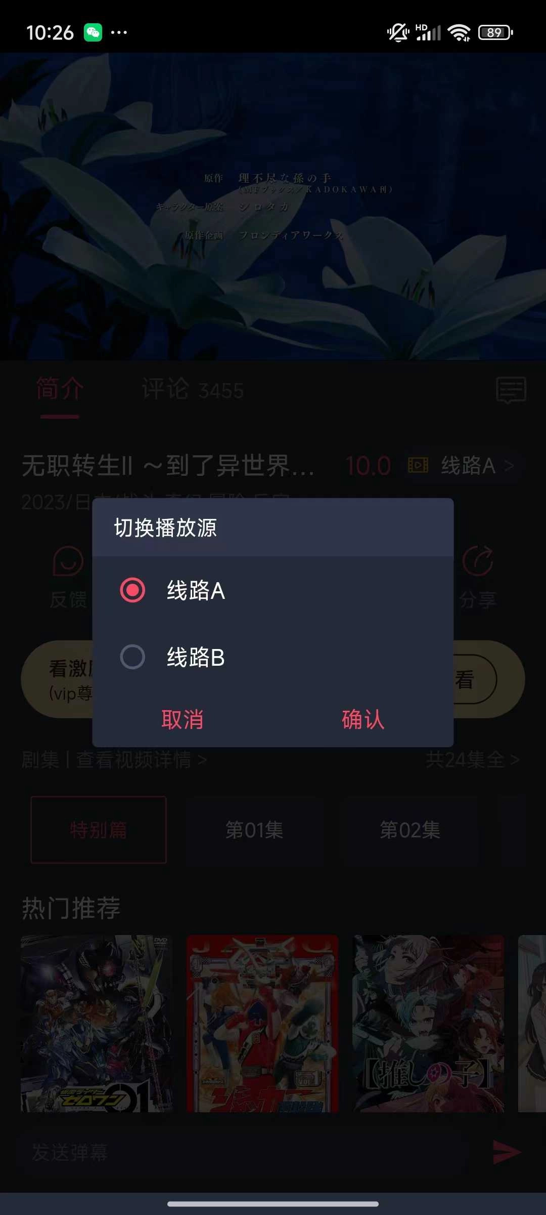 在播放页面点击线路A按钮(即红色圆圈位置)