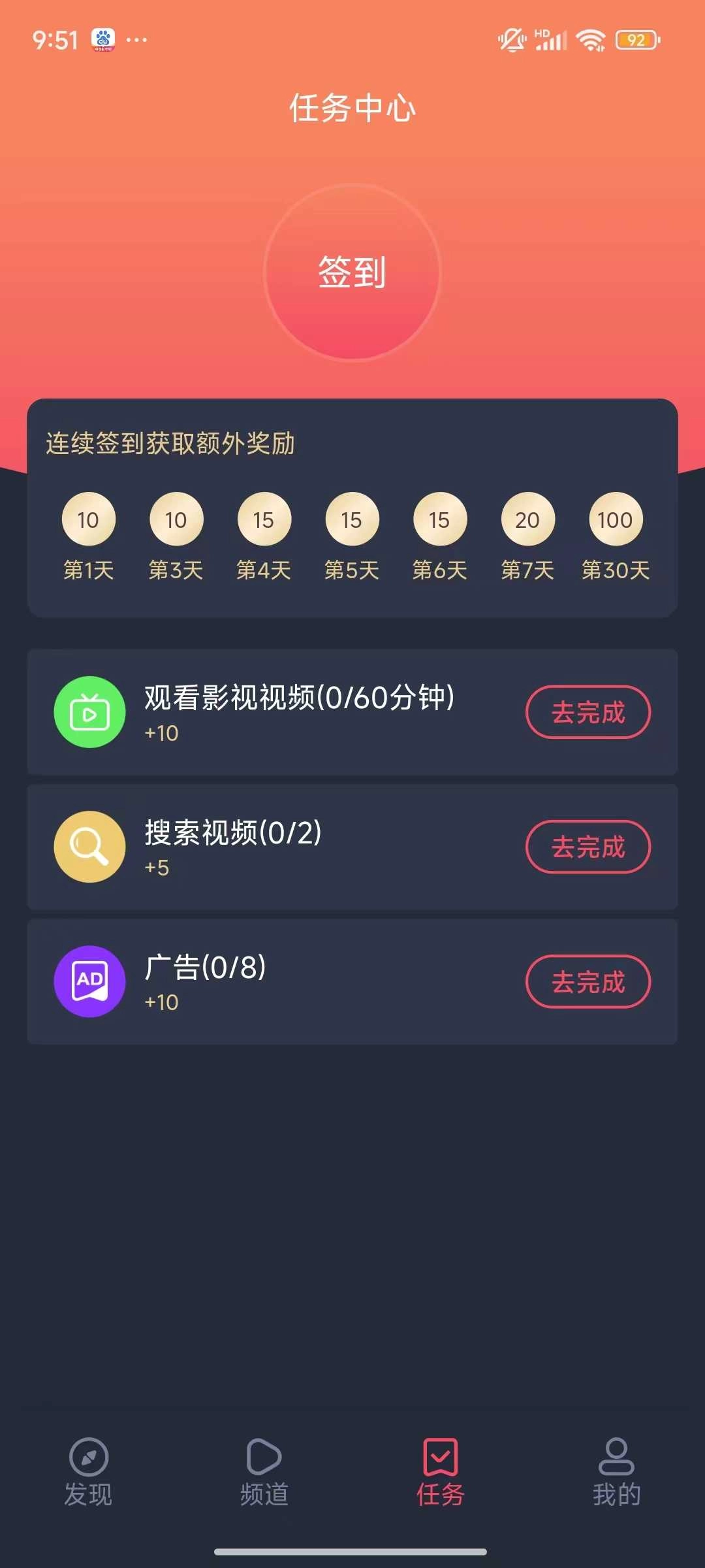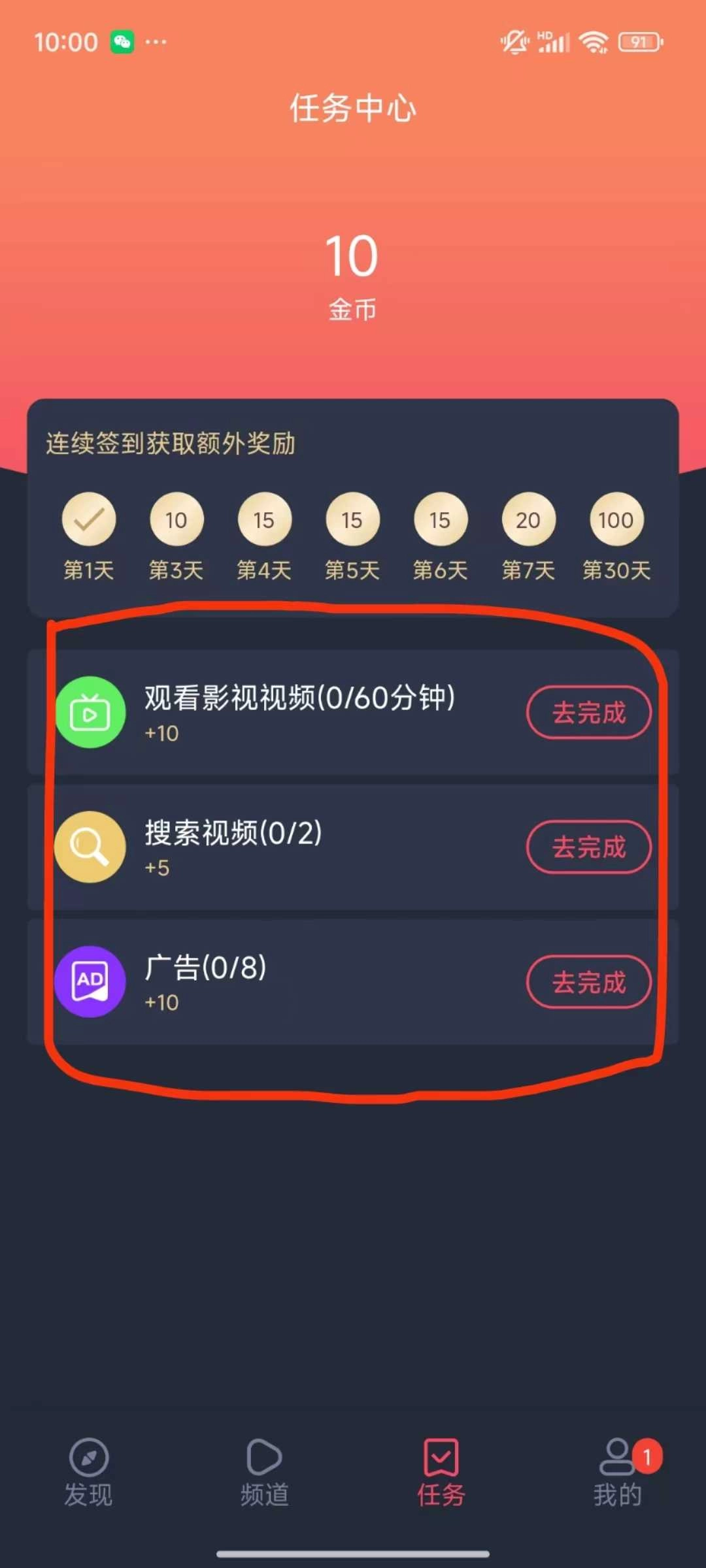 完成签到下方提供的各类小任务也能获得额外金币