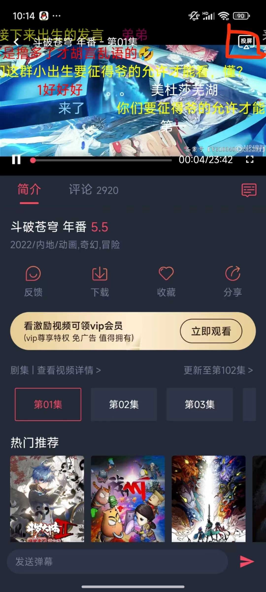 进入播放界面后,点击右上角的投屏图标(如图中红框标记处)