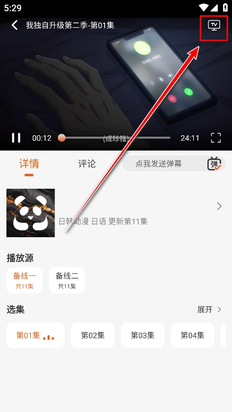 2.在影视播放页面,点击弹幕区域