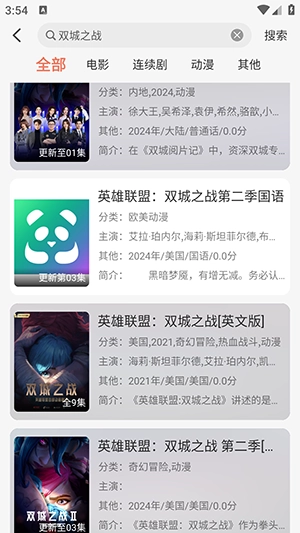 2.点击搜索后,会显示所有的相关搜索影片