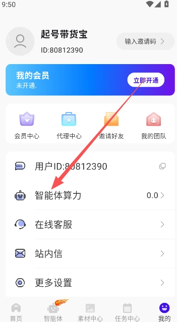 1、起号带货宝智能体是各位短视频营销用户用的最多的功能部分,关于这部分的算力值获取,具体可在用户界面点击智能体算力功能选项查看获取途径。