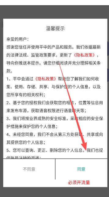 1、点击安装好的软件进入,阅读温馨提示内容部分,选择同意。