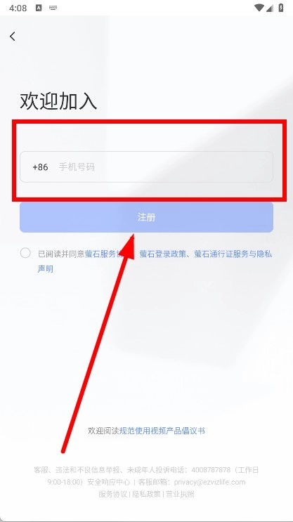 4、进入注册页面后,输入手机号,勾选同意相关协议,接着点击注册按钮,即可完成注册流程。