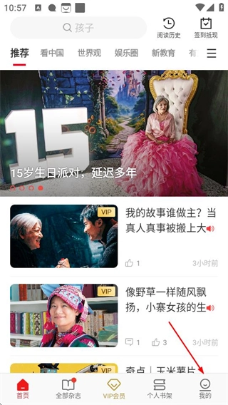 在《看天下》的首页,找到右下角的“我的”选项并点击,即可进入个人页面。