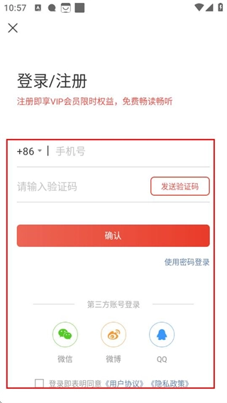 在登录注册页面,输入相关信息,勾选协议后点击确认按钮,即可完成账号登录操作。