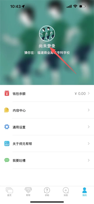 在师兄帮帮的首页,点击底部我的,进入个人页面。