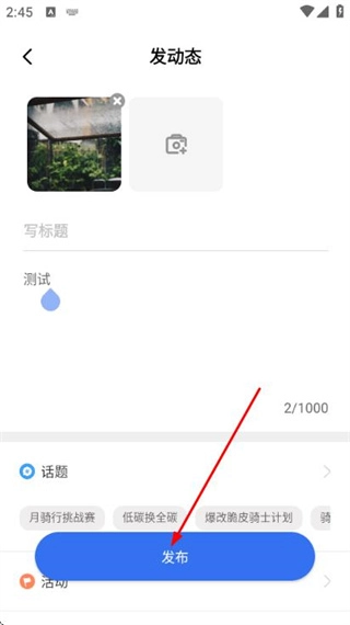 内容填写完毕后,点击发布按钮,即可完成动态发布操作。