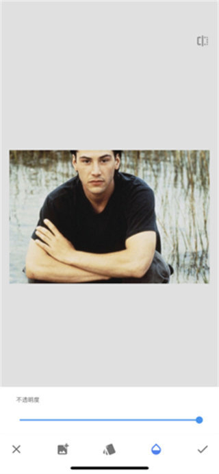 3、添加完成后,点击底部的【第三个按钮】来调整图片透明度,调整好后点击【对号图标】。