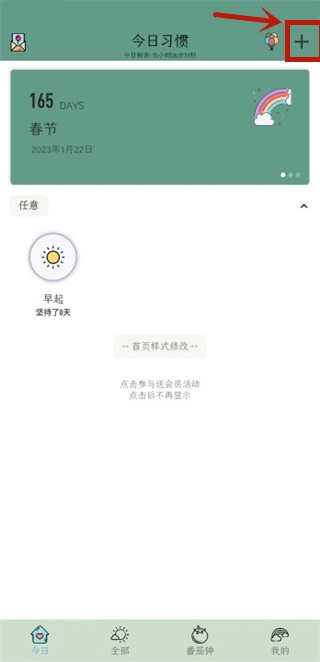 1、安装软件后,点击右上角+即可添加小习惯;