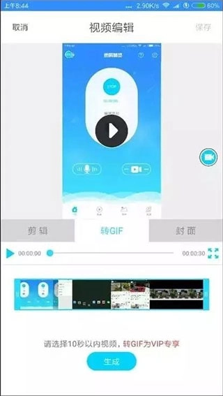 3、录制好的视频,我们还可以进行剪辑,这里显示“转GIF为VIP专属”,但是我们照样可以随意使用。