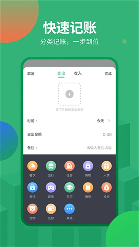 石头记账提供了极简的操作流程,用户只需打开,选择相应的支出或收入类别,输入金额和备注信息,即可快速完成一笔记账操作。