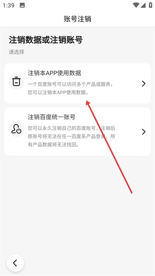 4、进入账号注销页面后,选择【注销本使用数据】这一选项,即可完成账号数据的注销操作。