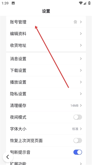 2、进入设置页面后,点击【账号管理】选项,即可进入账号管理页面。