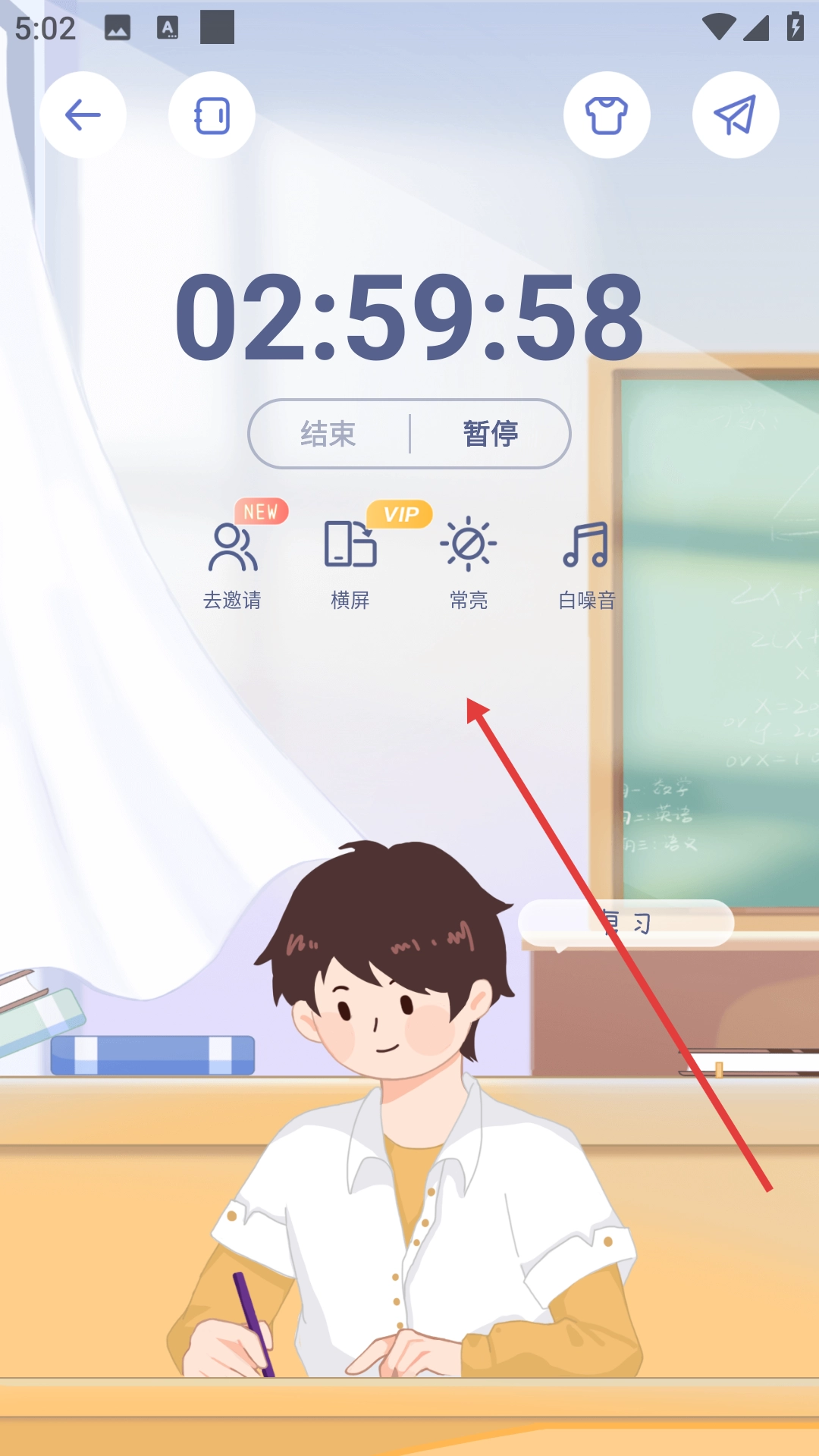 4、进入自习计时页面后,能够执行结束、暂停等操作,从而完成整个自习专注的流程。