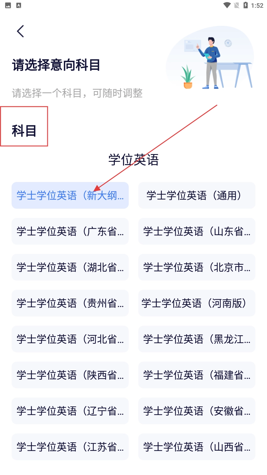 2、在科目选择页面,选择“学士学位英语(新大纲版)”。