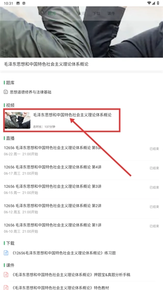 4、进入科目学习页面后,找到【视频】板块,从中选择对应的课程条目并点击,即可进入该课程的视频学习环节,从而获取课程内容。
