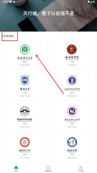 1、在【所有院校】列表中,找到并点击【海南师范大学】这一条目,进入该校的专业列表页面后,即可查看其开设的专业资源。