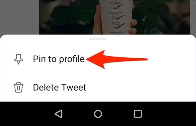4、在从手机屏幕底部弹出的菜单里,选择“Pin to profile” 。