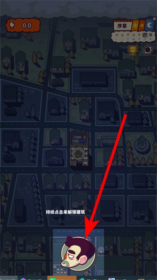 1. 进入游戏,画面会提示持续点击以解锁建筑。这时,点击相应的建筑区域,即可逐步解锁新建筑。在解锁过程中,会获取一定资源,有助于后续操作。