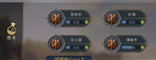 在游玩时,玩家城镇中心每升级一级,就会解锁研究所。研究所包含技术和军事两类研究,资源方面主要侧重于技术研究。在技术研究的科技里,开垦、冶炼、铸币、砍伐、开采等是提升资源产量的关键科技。在提升资源产量的过程中,别忘记同步提升仓库的存储等级。