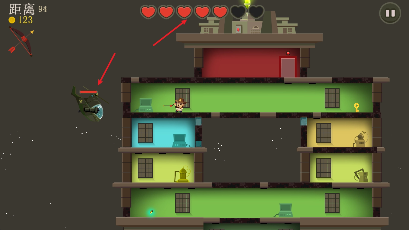 解救所有人质、找到钥匙后,即可前往顶层破坏发射器,进而进入下一关。