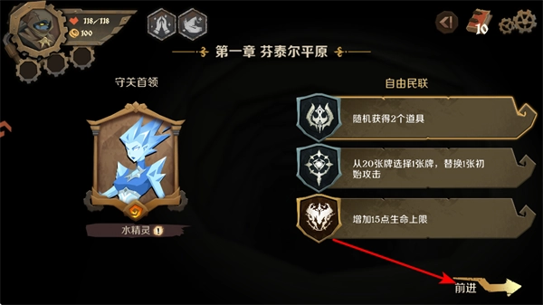 1. 着手推进关卡,轻点前进按钮,踏入芬泰尔平原的关卡地图,开启游玩探索之旅。