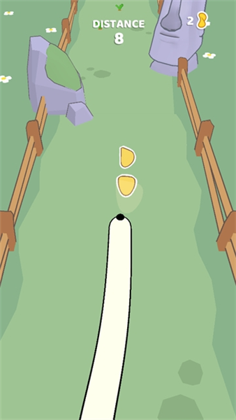 2. 只需按住屏幕,就能操控长鼻子狗的鼻子转向,以此躲避障碍物并收集薯片。