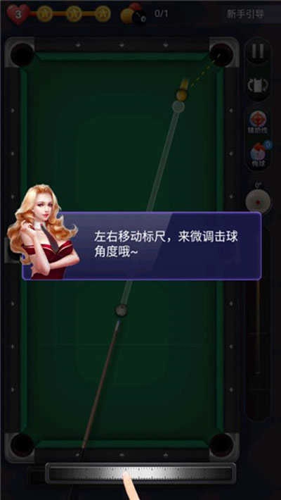 1、左右移动标尺时,需操控球杆进行移动,点击即可将球杆射出以击打台球,把目标球打入球袋就能获得分数。