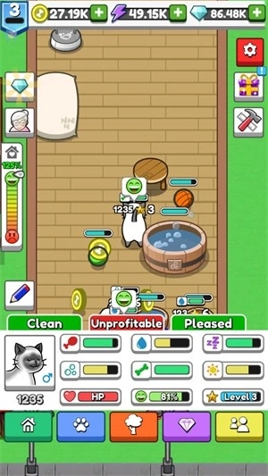 6、不断扩大你的房屋来收养更多的宠物,不断解锁更多的设施来体验最有趣的养成过程。