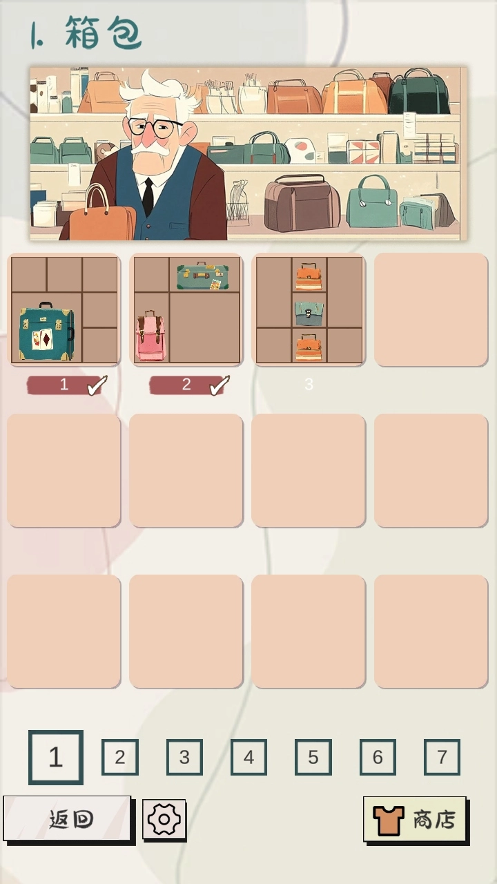 明确关卡目标:每一关开始,界面会给出目标图案,玩家需将混乱的杂货铺布局整理成与之相同的样子。比如目标是将水果摆放成特定造型,或是把衣帽排列整齐。