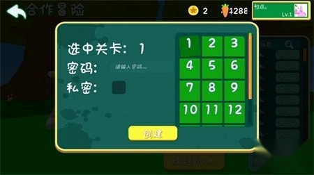 3、在此,你可以选择关卡,并设置密码供好友加入。