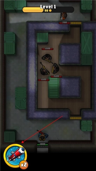 5、进入下一关,点击左下角的火箭直接命中敌人;