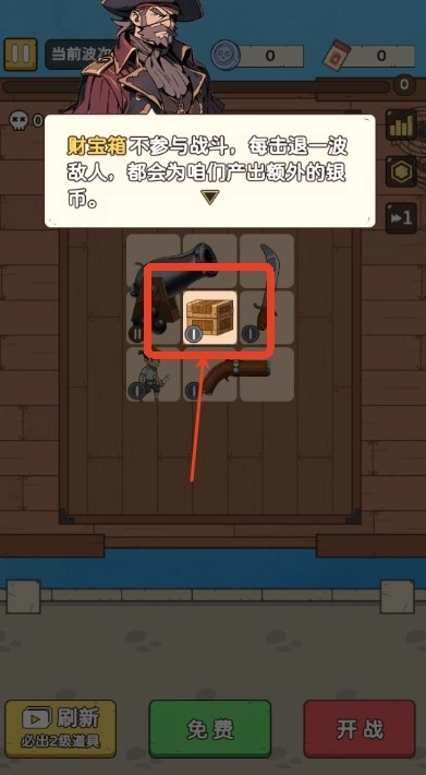 4、财宝箱不会参与战斗,每成功击退一波敌人后,它都会额外产出一些银币。