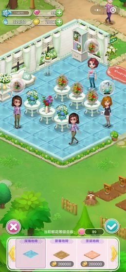 4、把不同的花卉自由搭配组合成漂亮的插花,就能卖给小镇居民,从而获得相应的金币奖励。