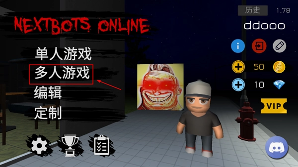7、模式选择丰富多样:涵盖PvE对抗(人类vsAI)、非对称竞技(1名玩家扮演Nextbot)、自由探索、限时解谜等多种玩法;