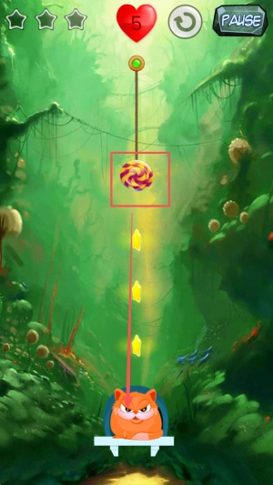 2. 通过拖动绳子为猫咪搭建桥梁,只要PALSE绿灯亮起,就表明路线正确。