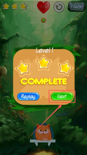 4、若出现「Level 1 COMPLETE」,可点击「Next」晋级,也可点击「Replay」以刷取更高星级。