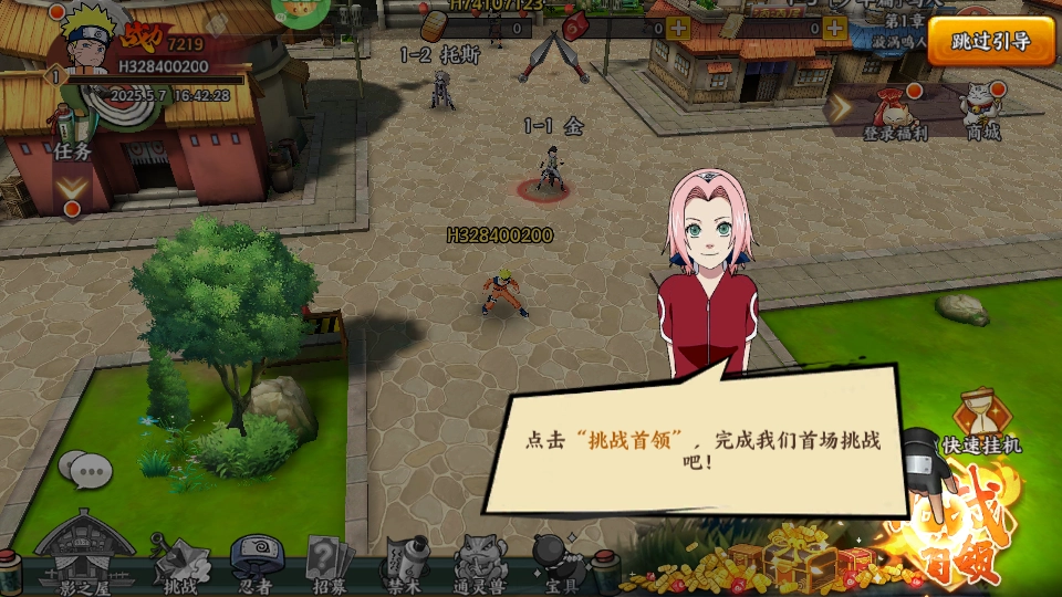 点击挑战首领,完成首场任务挑战;