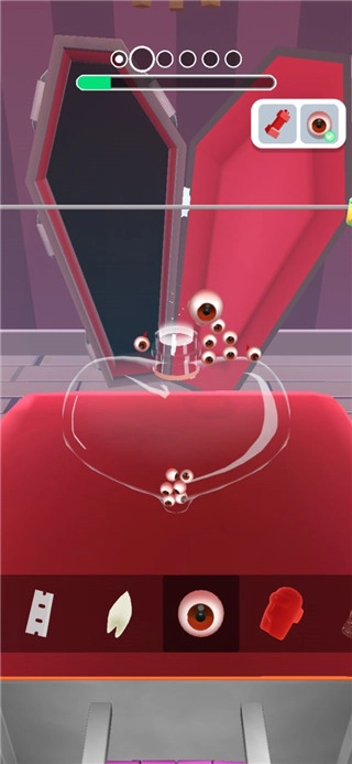 选择瓶子,然后将顾客喜欢的眼球放进去。