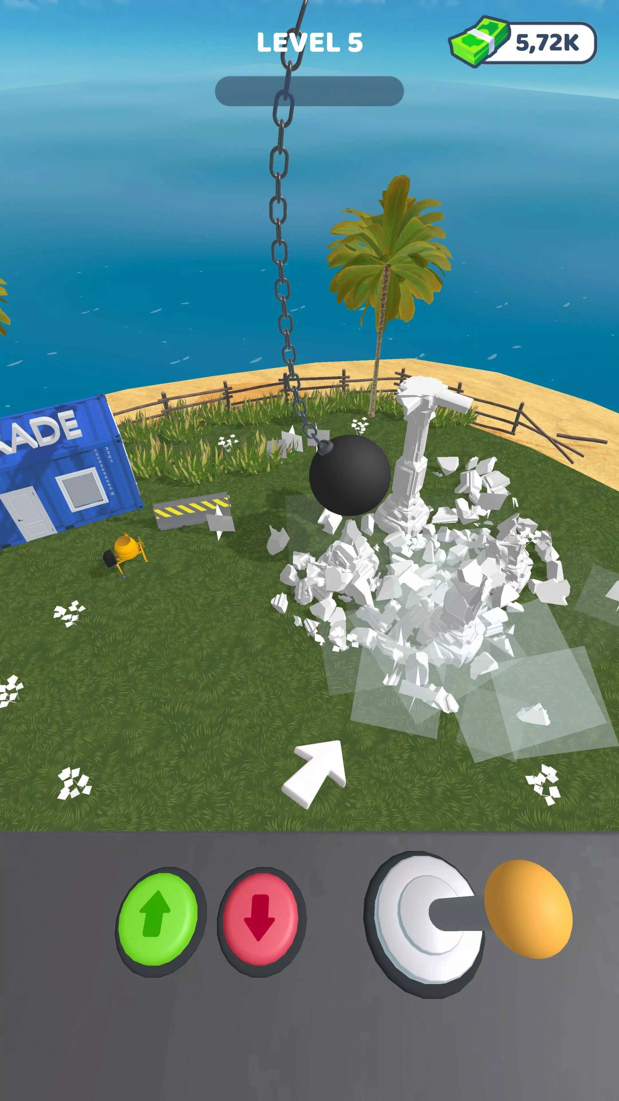 这是一款易于操作的起重机主题破坏类游戏,玩家能快速掌握玩法。只需在屏幕上进行点击与滑动操作,就能灵活调整起重机的姿态和方位。当起重机对准目标区域后,再次点击屏幕即可启动机械臂等装置,精准施展力量对建筑物进行施力。