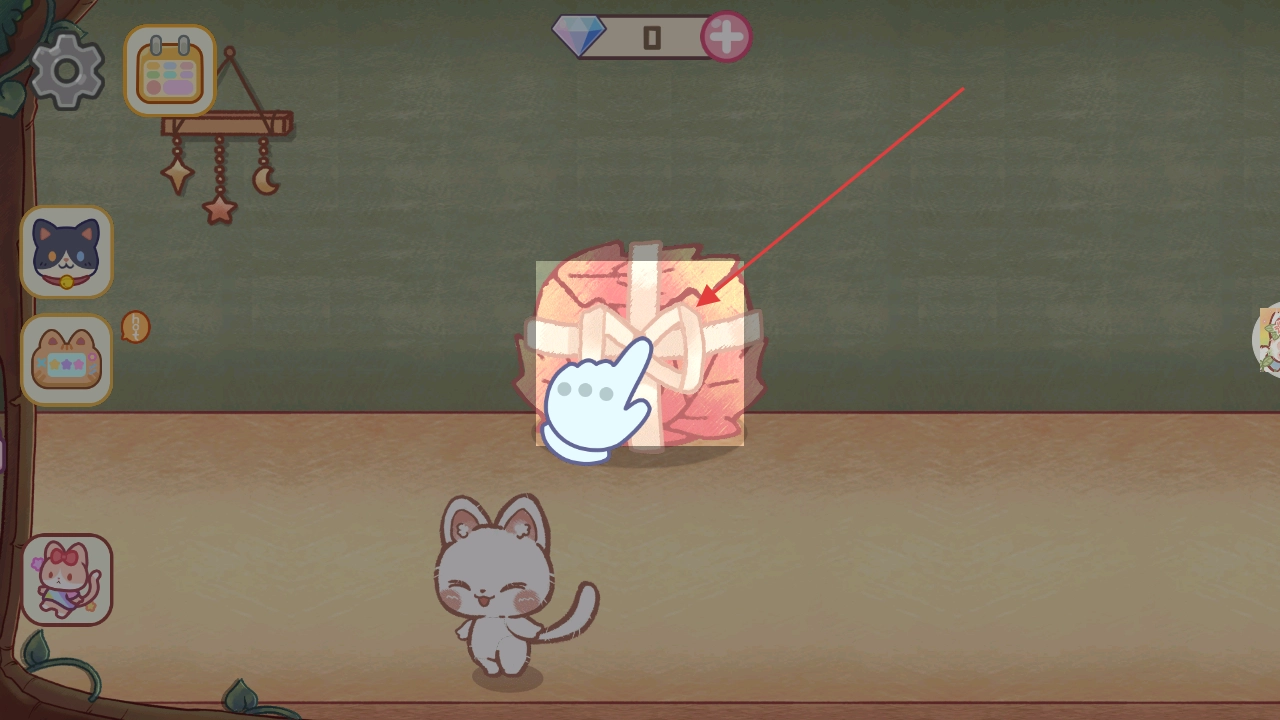 在当前的游戏情境里,找到并点击那个形似包裹的粉色物件,就能解锁对应的奖励,进而得到游戏所需的各类资源,为接下来的游戏进程提供有力支持。