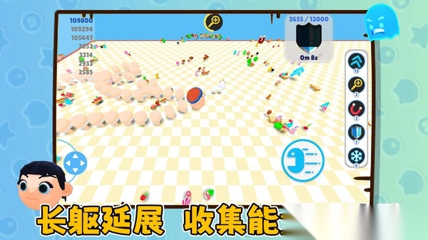 这是一款主打点击操作的休闲竞技游戏,凭借轻松的上手门槛和需要策略思考的玩法收获了不少玩家的喜爱。游戏开始时,玩家操控的是一个身形小巧的角色,通过持续点击屏幕来获取成长所需的资源,让角色一步步变得更壮硕。在这个弱肉强食的环境中,玩家得灵活规划行动路线,避开那些体型远超自己的对手,同时抓住时机去“吃掉”比自己弱小的目标,最终目标是成为游戏中的最强者。